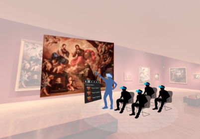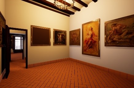 2. “EXPLORANDO A COLECCIÓN”, consiste nun percorrido 360º, virtual, inmersivo e tanto individual como grupal, polas salas de exposición permanente do Museo. Para iso, ofreceranse seis salas polas que os participantes poderán moverse. Ao entrar a cada sala, recibirán unha breve introdución e despois poderán escoller as obras que máis lles interesen e/o lles chamen a atención, das que recibirán unha información moi sinxela, activándoa coa súa propia man. Entre as obras, atoparán varias pezas en 3D que poderán “coller” virtualmente, o que fará a experiencia algo moi sorprendente. Este percorrido en modo individual non precisará de wifi, aínda que o formato grupal sí o necesita.